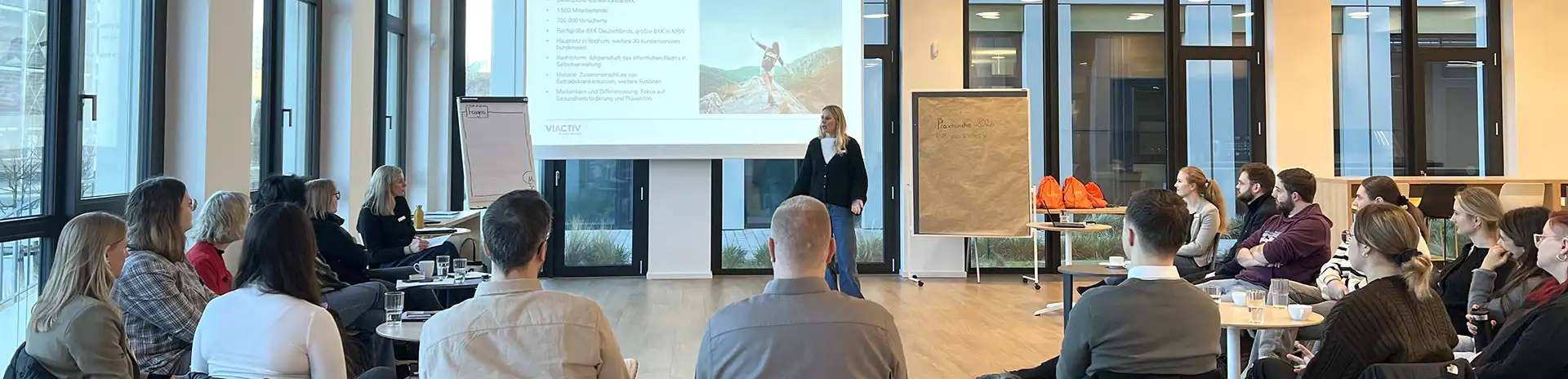 Vom 2. bis zum 5. Februar 2026 war es wieder so weit: Bereits zum fünften Mal durften wir Studierende des Instituts für Arbeitswissenschaft an der Ruhr-Universität Bochum zur Praxiswoche begrüßen. Vier Tage lang arbeiteten 15 Masterstudierende des Studiengangs Organizational Management an zwei Beratungsaufträgen der Personal- und Organisationsentwicklung, die eine hohe strategische Relevanz für die VIACTIV haben: „Laterale Führung“ sowie „Gesamtunternehmerisches Denken & Handlungsorientierung“.