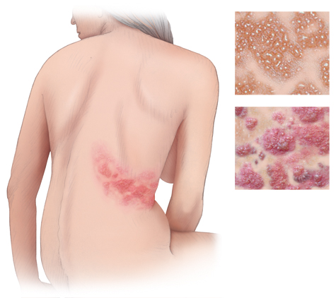 Wenn das Immunsystem geschwächt ist, zum Beispiel durch eine Erkrankung, starken Stress oder im Alter, können sich die Viren erneut vermehren. Sie wandern dann am betroffenen Nerv entlang in die Haut. Durch die Vermehrung der Viren in den Hautzellen entstehen eine Entzündung und der typische Hautausschlag. Die Entzündung des Nervs führt dazu, dass die von ihm versorgten Hautbereiche schmerzen.